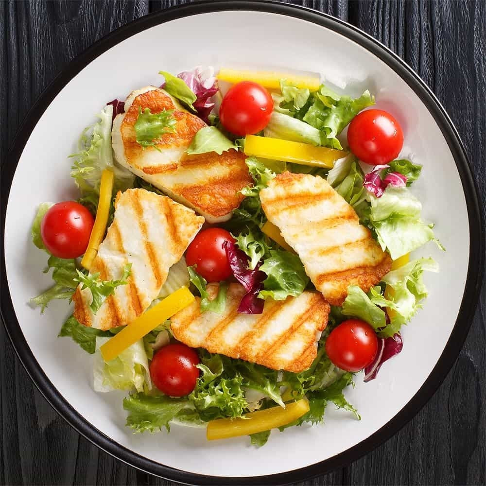Halloumi cheese is the traditional cheese of Cyprus and it is made from a mixture of cow's, goat's and sheep's milk. It’s a semi hard cheese and is the only cheese in the world that does not melt when cooked. That’s why Halloumi cheese can be grilled, fried, grated on pasta, or can be used as a main ingredient in salads and omelettes, or even just enjoyed fresh as it comes.
