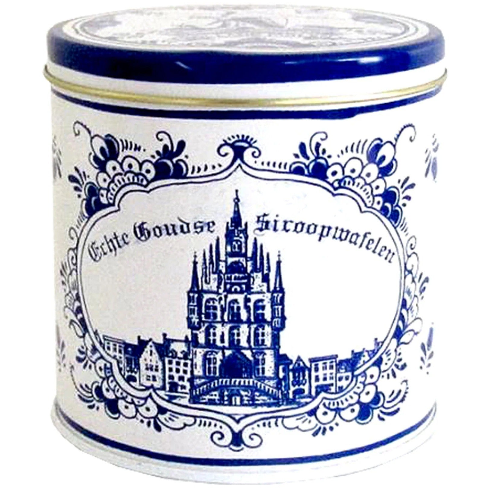 Holland Bakehouse Stroopie stroopwafels (syrup waffles) in a gift tin with Delft Blue design. There are 8 waffles per tin.