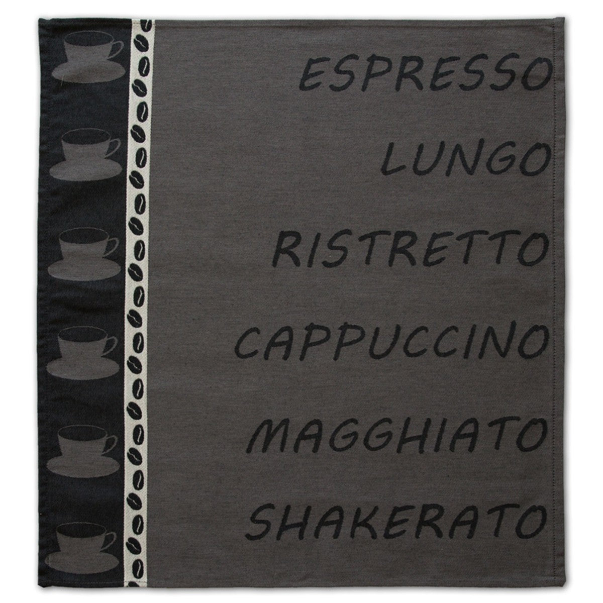 Lovely and good quality hand or tea towel with a coffee design. 100% Cotton.